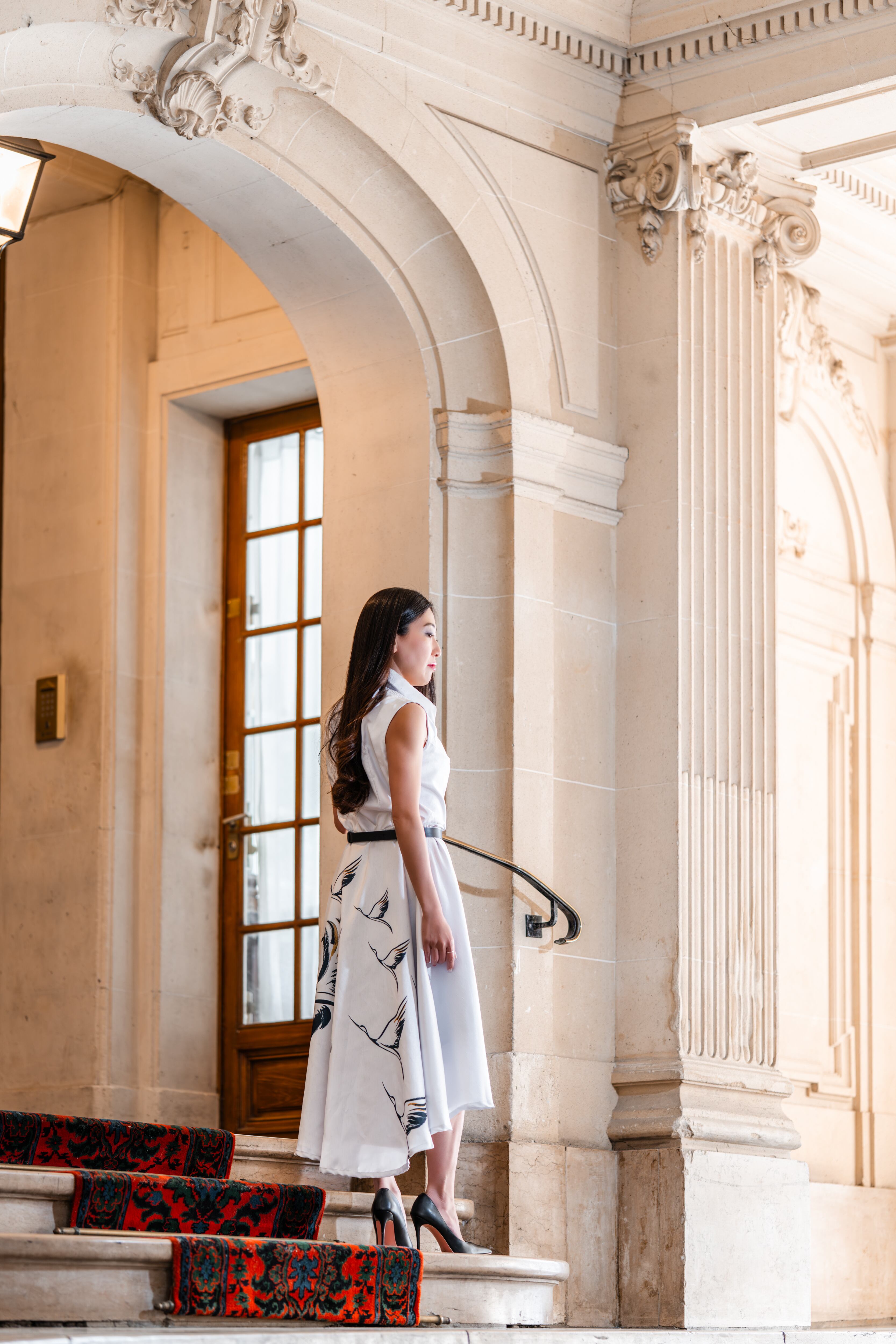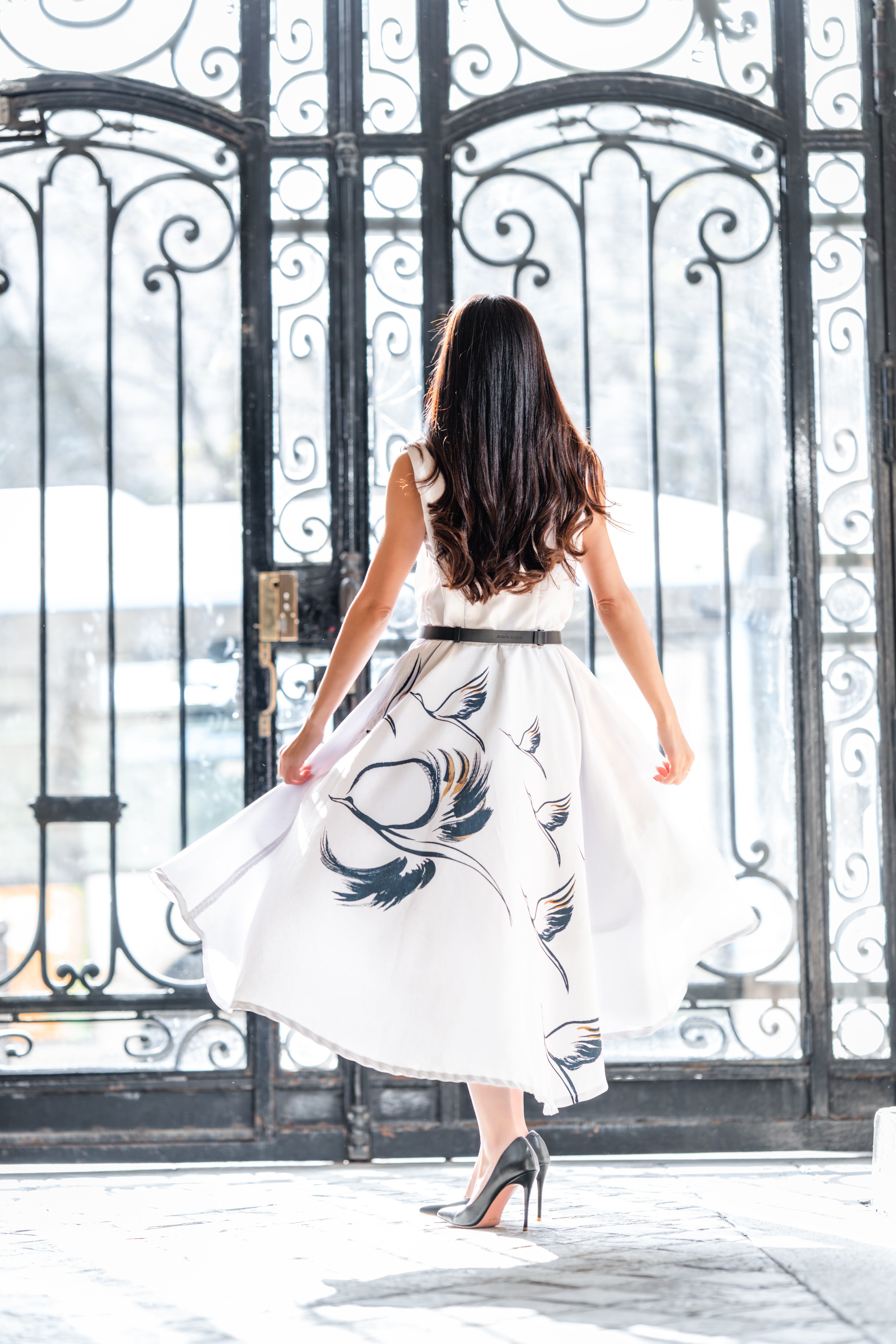 洗練された美しさを纏う、オリジナル鶴柄のシャツワンピース
