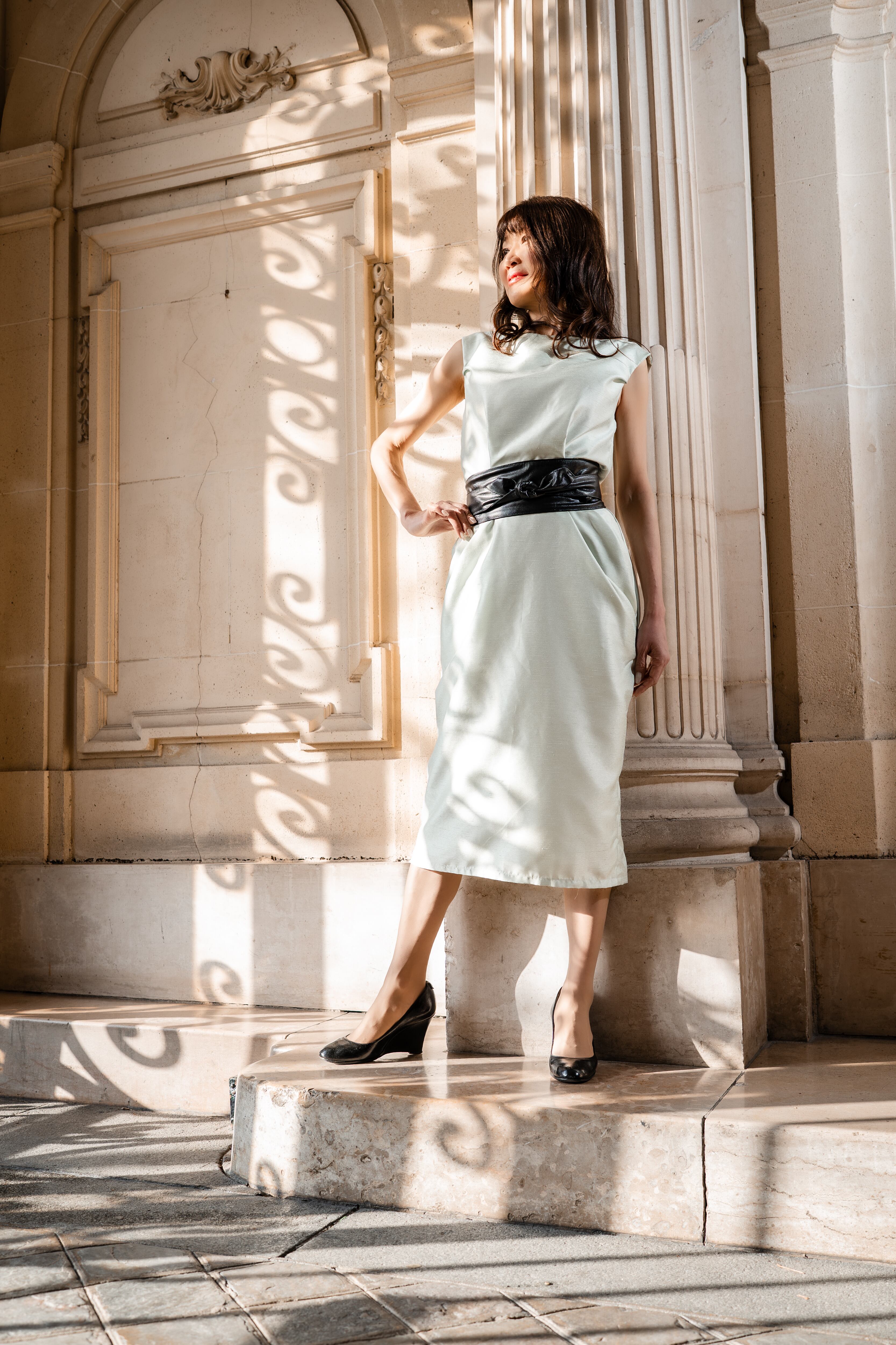 洗練された美しさを纏う、個性際立つコクーンタイトワンピース