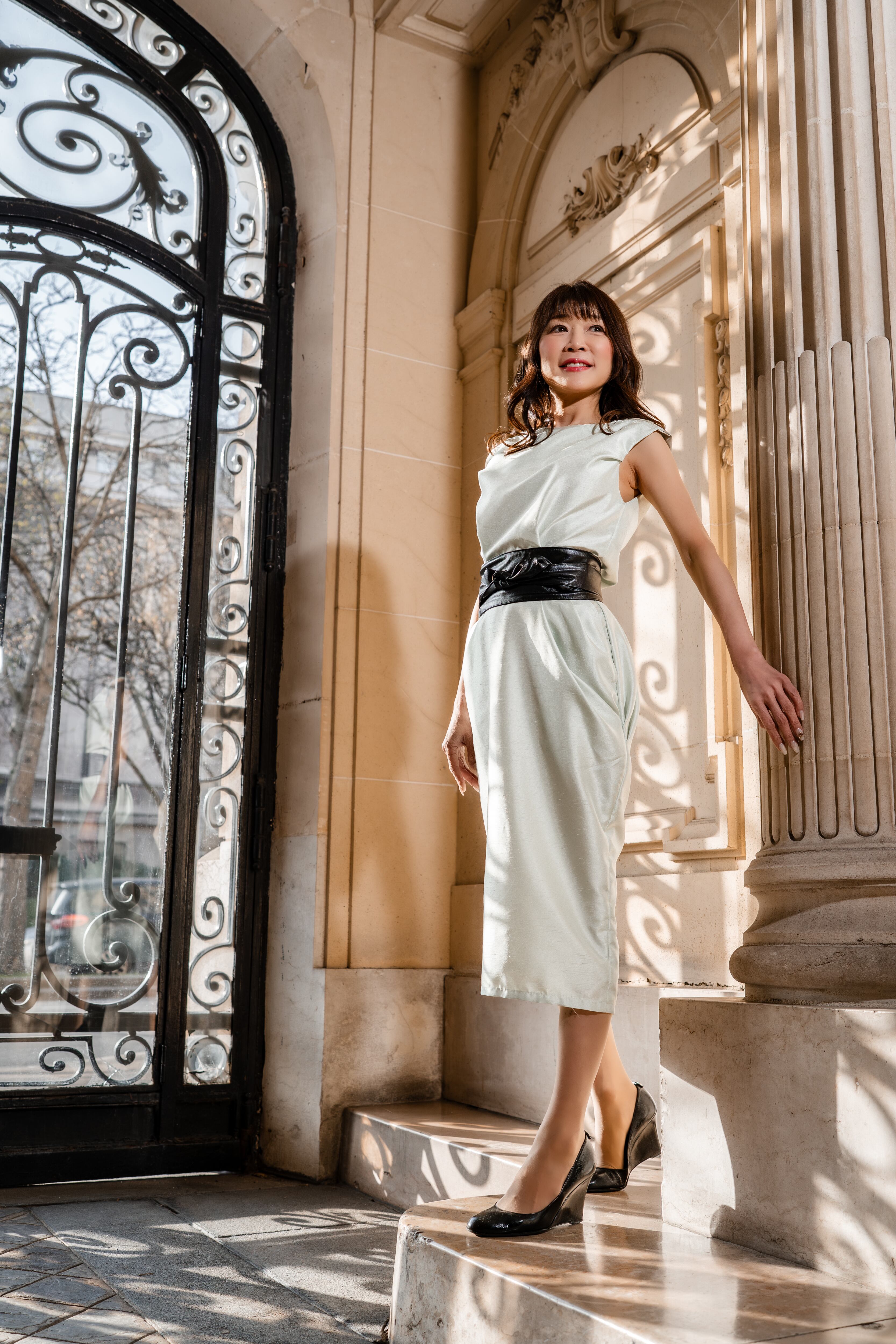 無駄をそぎ落としたシルエットが特徴で、身体のラインを優雅に包み込む美しいドレープが魅力です。