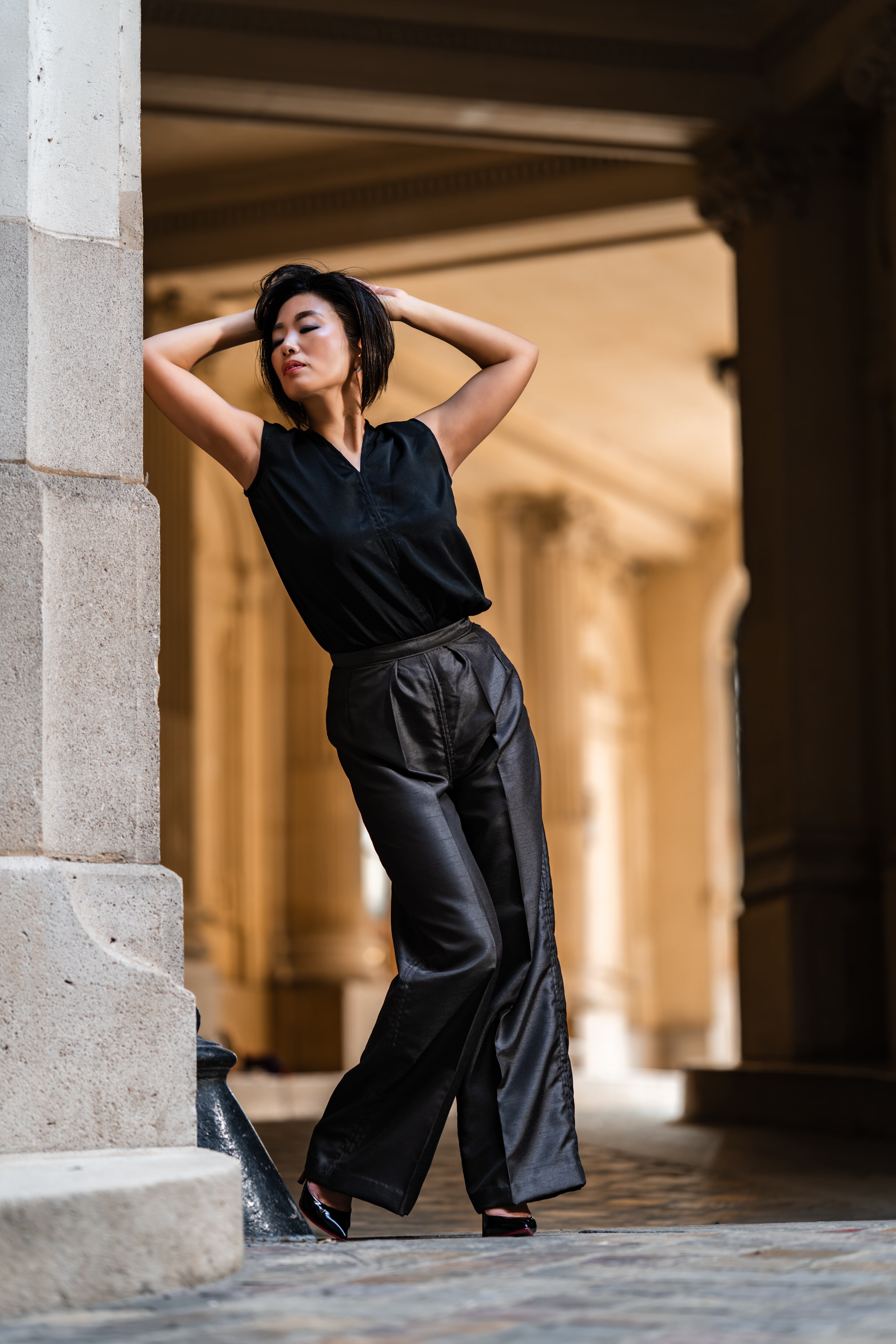 洗練された美しさを纏う、リュクスサテンパンツ